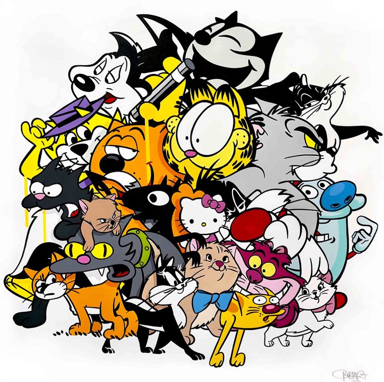 Cats - Original artwork done on a canvas with acrylic and marker - Signed by the artist on the front (2022).