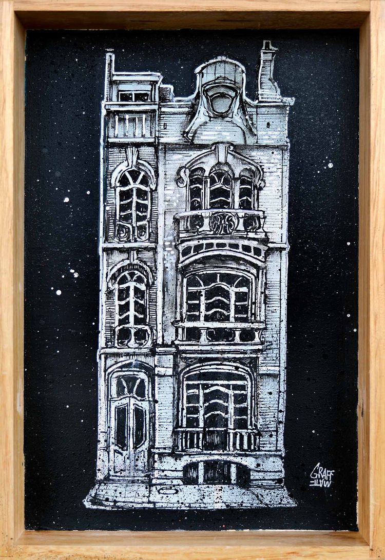 Façade Nocturne - Original artwork done on wood with acrylic and marker - Framed, signed by the artist on the front (2026).