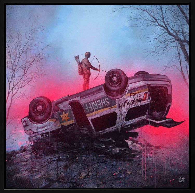 Free Nottingham - Original artwork done on a canvas with acrylic, spray paint and marker - Framed, signed by the artist on the front (2025).