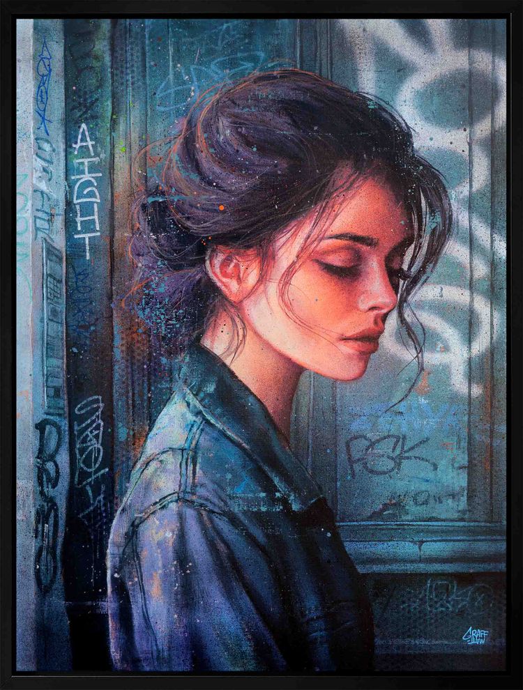 Hidden Place - Original artwork done on a canvas with acrylic and spray paint - Framed, signed by the artist on the front (2026).