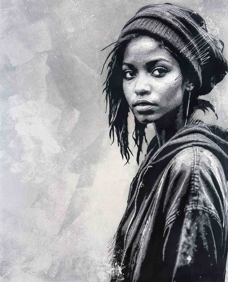 June - Original artwork done on a canvas with stencil and spray paint - Dated and signed by the artist at the back (2025).