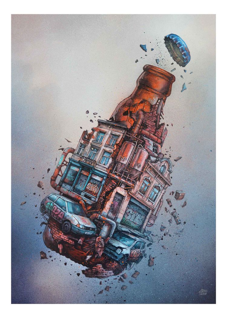 La Ville Sous Pression HMP (Print #10) - Digigraphie réalisée sur papier d'art (Hahnemühle, 210 grs) et réhaussée par l'artiste au marqueur et à la bombe aérosol - Limitée à 20 exemplaires, chaque exemplaire est unique - Numérotée, datée et signée par l'artiste sur la face avant (2026).
