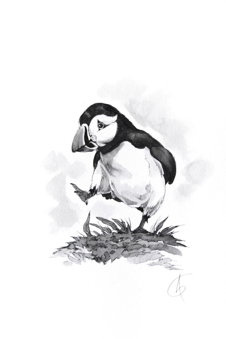 Macareux - Original drawing on a fine art paper done with watercolor and ink - Signed by the artist on the front (2025).