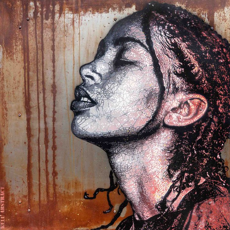 Nabintou Metal - Original artwork done with stencil and spray paint on an oxidized metal plate - Signed by the artist at the back (2025).