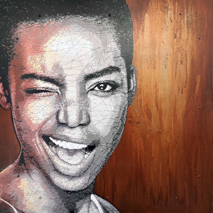 Nour - Original artwork done with stencil and spray paint on an oxidized metal plate - Signed by the artist at the back (2025).
