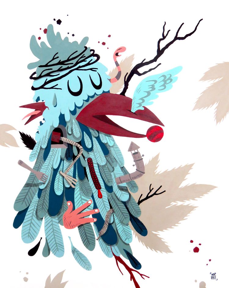 Papa Poule - Artwork done on a paper with acrylic and ink - Signed by the artist on the front (2019).