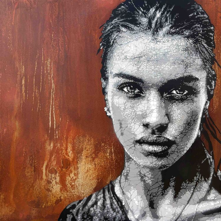 Penelope Metal - Original artwork done with stencil and spray paint on an oxidized metal plate - Signed by the artist at the back (2025).