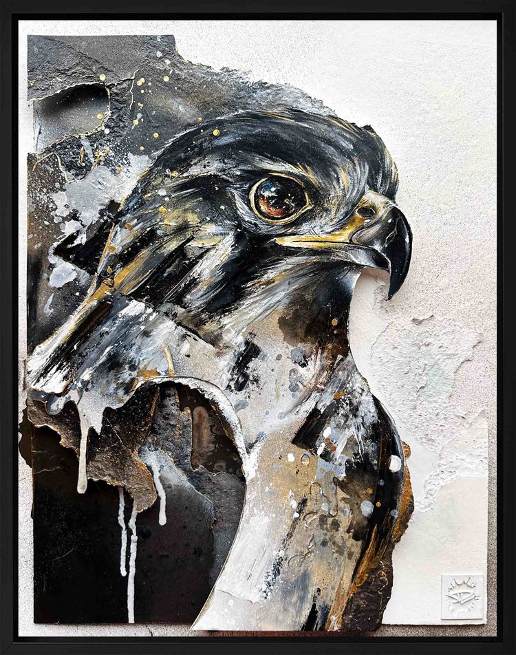 Sentinel - Original artwork done with oil painting and spray paint on a cardboard composition - Framed, signed by the artist on the front (2025).