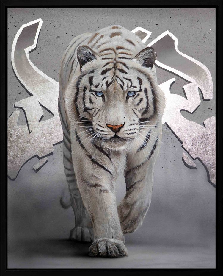 Silver - Original artwork done on a canvas with acrylic and spray paint - Framed, signed by the artist at the back (2026).