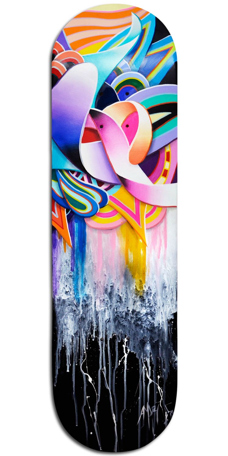 Skate in Black - Original artwork done on a new skateboard deck with acrylic, oil and spray paint - Signed by the artist on the front (2026).