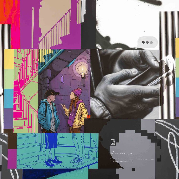 Echoes of Time - Oeuvre originale sur toile réalisée à l'acrylique et bombe aérosol - Datée et signée par l'artiste au dos (2024).