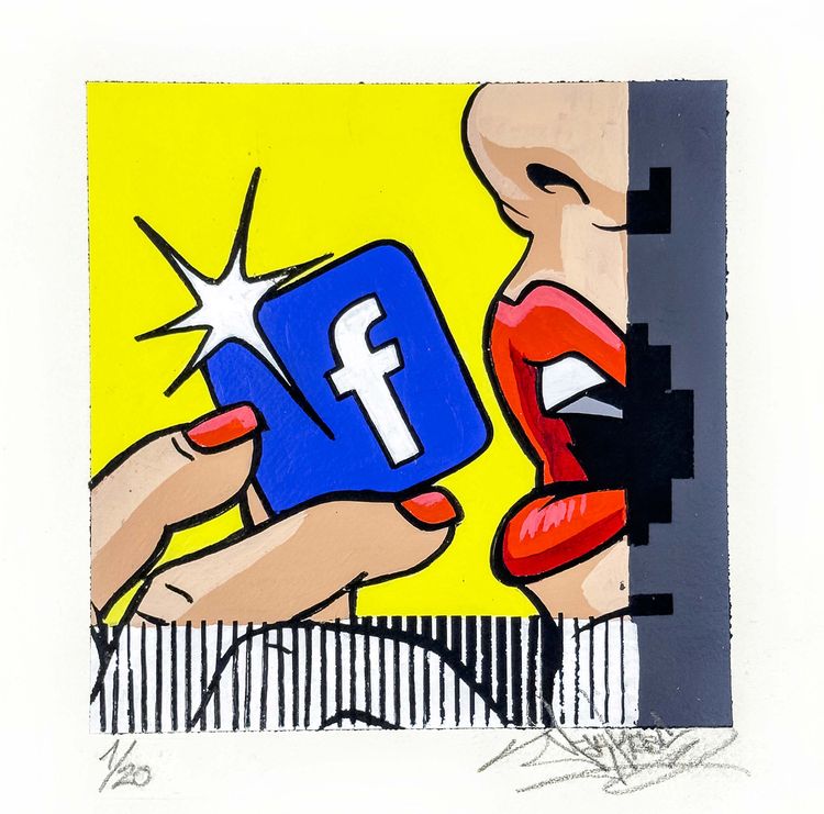 Feed Me Blue - Oeuvre originale réalisée à l'acrylique sur un papier artisanal sans acide (320 g) - Édition limitée à 20 exemplaires - Numérotée et signée par l'artiste sur la face avant (2025).