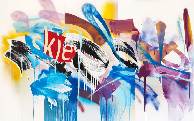 Jungle Skies #1 - Peinture sur toile réalisée à l'acrylique et bombe aérosol - Signée par l'artiste au dos (2020).