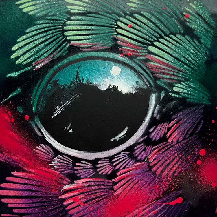Birdview #22 - Original artwork done with stencil, spray paint and acrylic on a glass plate glued on wood - Dated and signed by the artist at the back (2025).