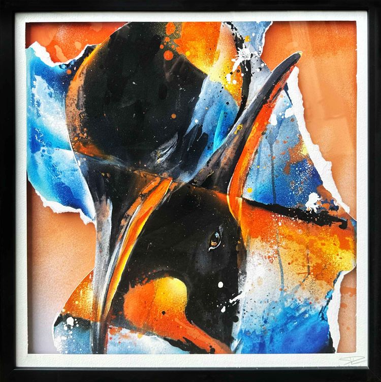 Emperors - Original artwork made of printed collages handpainted with acrylic and spray paint - Framed, protected by a glass and signed by the artist on the front (2025).