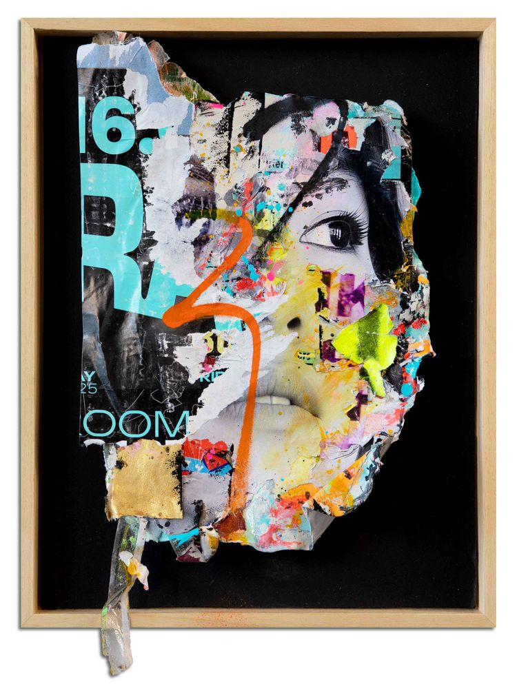 OOM - Original artwork made of different layers of collages and painted with acrylic - Framed, dated and signed by the artist at the back (2026).